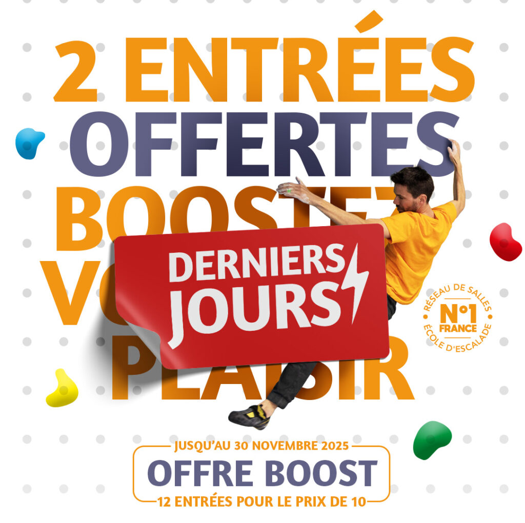 Envie de te (re)mettre à l’escalade, de bouger à ton rythme ou de partager une activité fun avec tes proches ?Avec cette carte, tu profites de 12 séances… mais tu n’en payes que 10 ! 🔥 Le concept est simple :👉 Tu achètes une carte 10 entrées👉 On t’offre 2 séances supplémentaires👉 Résultat : plus […]